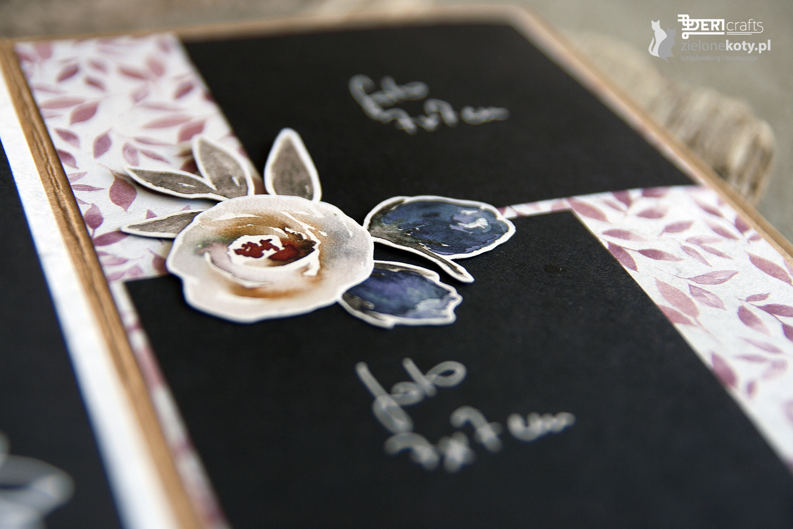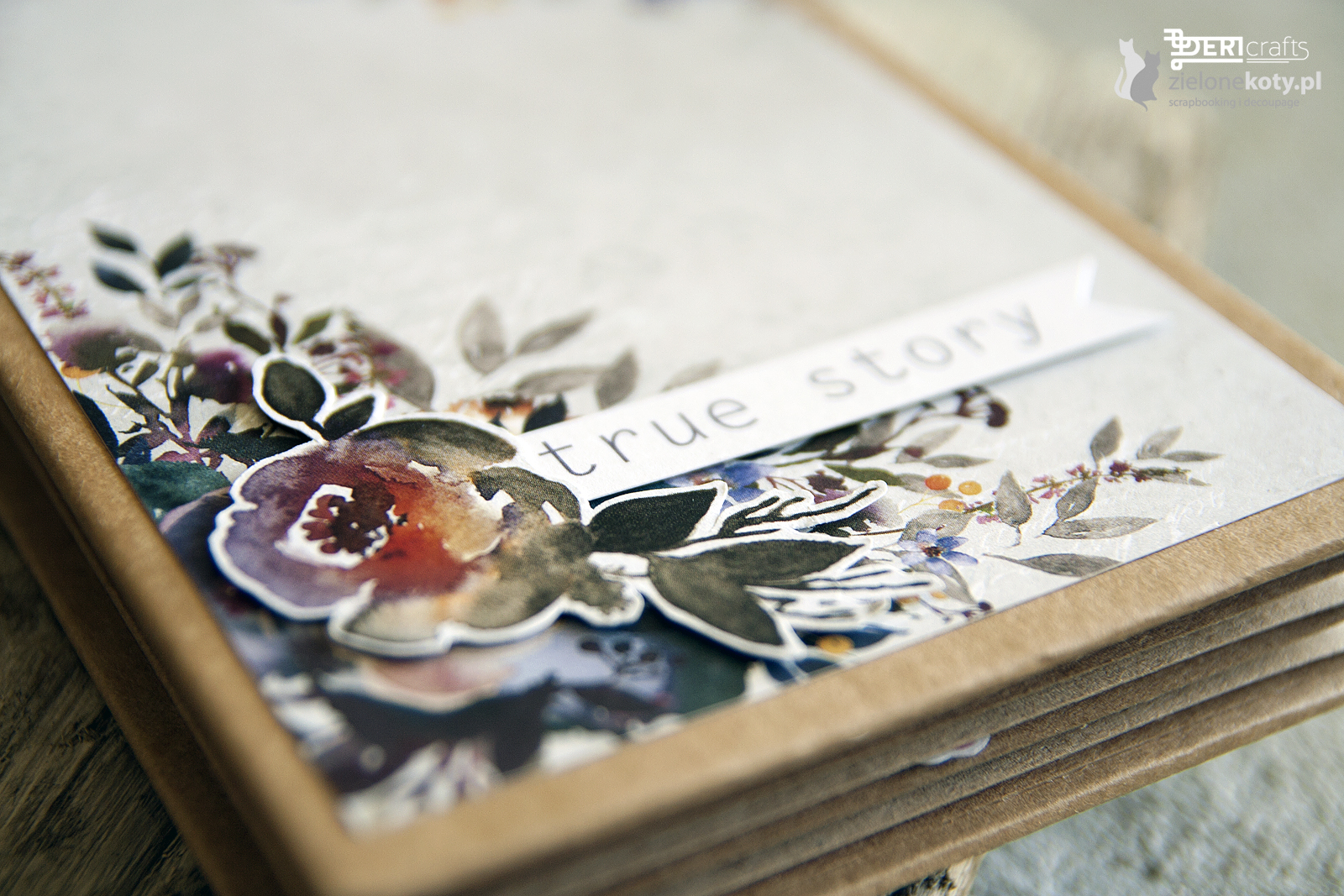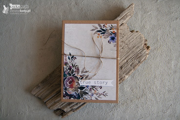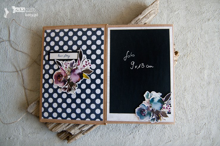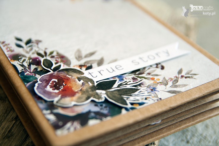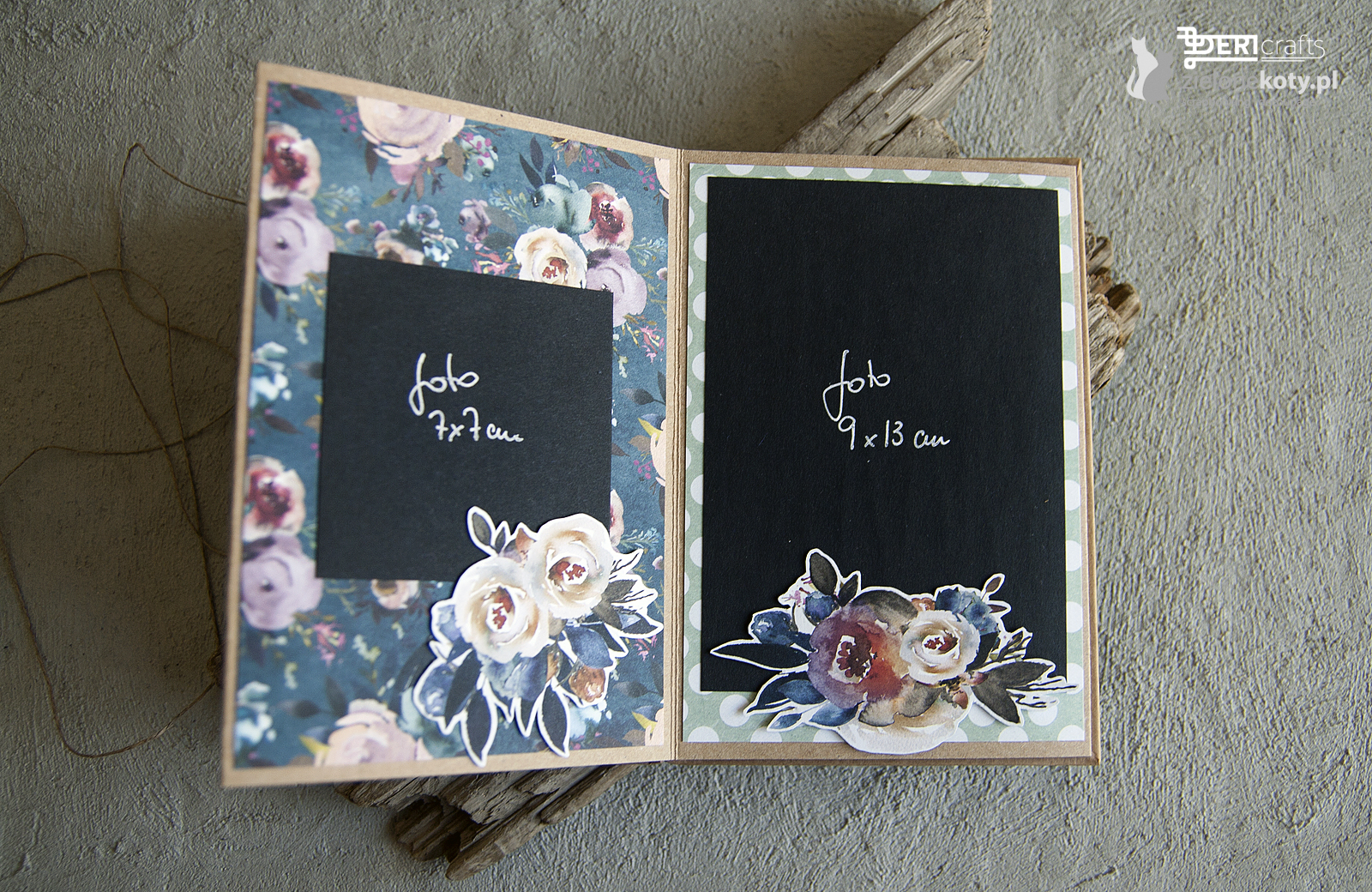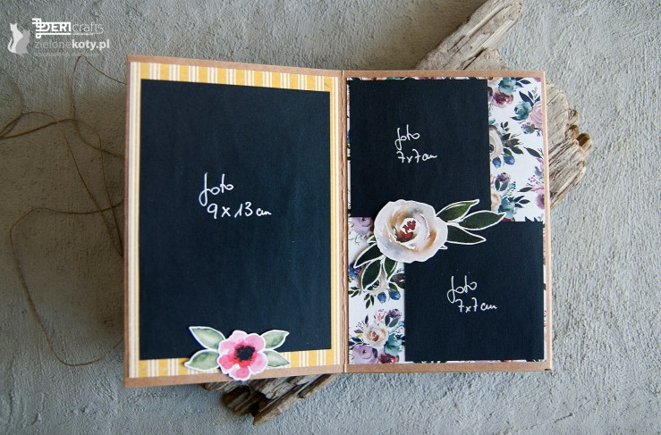 Today’s inspiration for you is, exceptionally, not a card, but a mini album. The theme of the album corresponds to the ZieloneKoty.pl challenge “Gifts of nature”, therefore the main motive is flowers. In my work I have used a collection of papers and accessories from P13 Paper Products company (Piątek Trzynastego) and an album base – harmonica from ecoscrapbooking company.