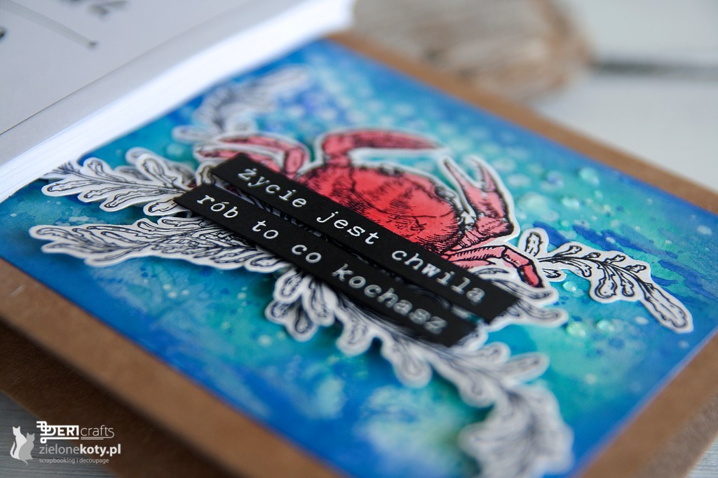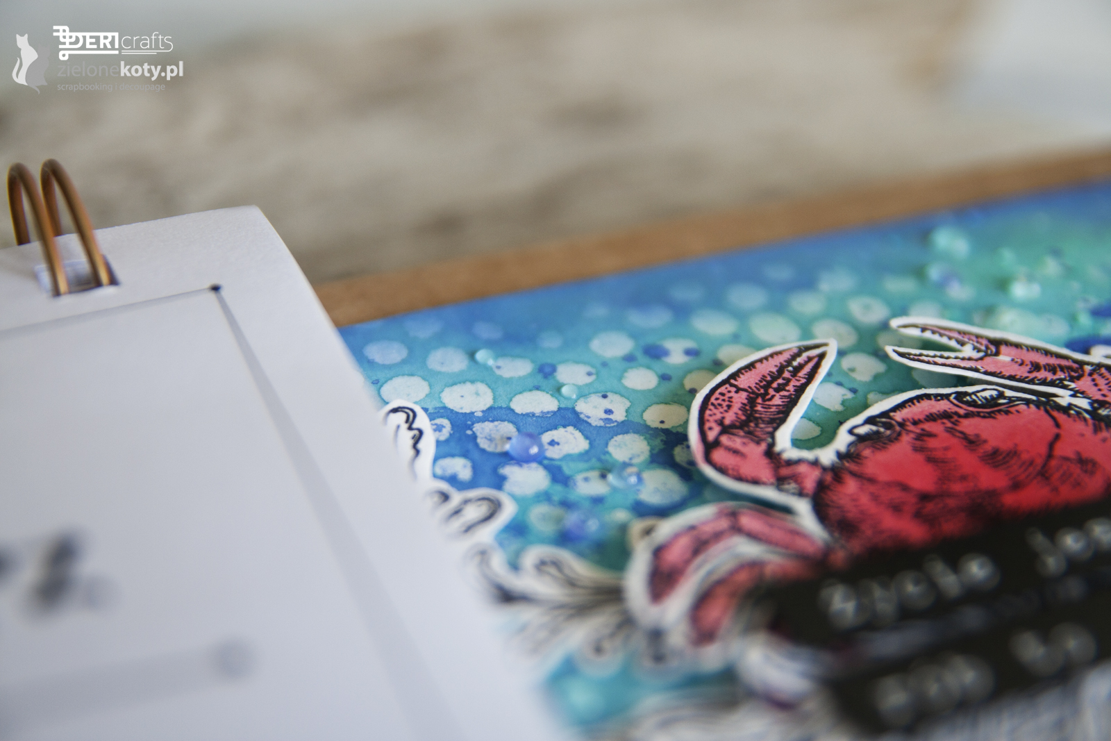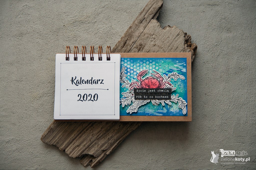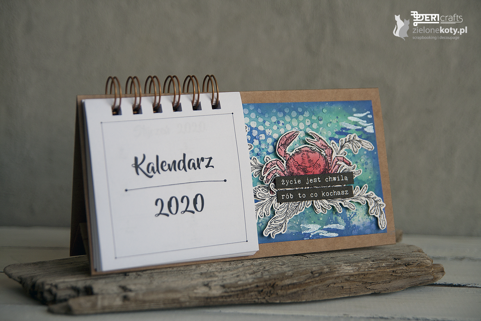 Tym razem mam dla was nie kartkę a kalendarz. Zapewne dziwi was, że tak późno inspiruję w tym temacie, ale muszę się wam przyznać, że zawieruszyła mi się ta baza czas jakiś temu i robiąc porządki w kraftowym kąciku, z niekłamanym zdumieniem odkryłam jej obecność 😉 Z drugiej strony zostało jeszcze pół roku i szkoda byłoby zmarnować te bazę. Tak właśnie trafiła do pracy inspiracyjnej. Wykorzystałam w niej szereg produktów sygnowanych przez Tim Holtza, a motywem przewodnim pracy było morskie dno.