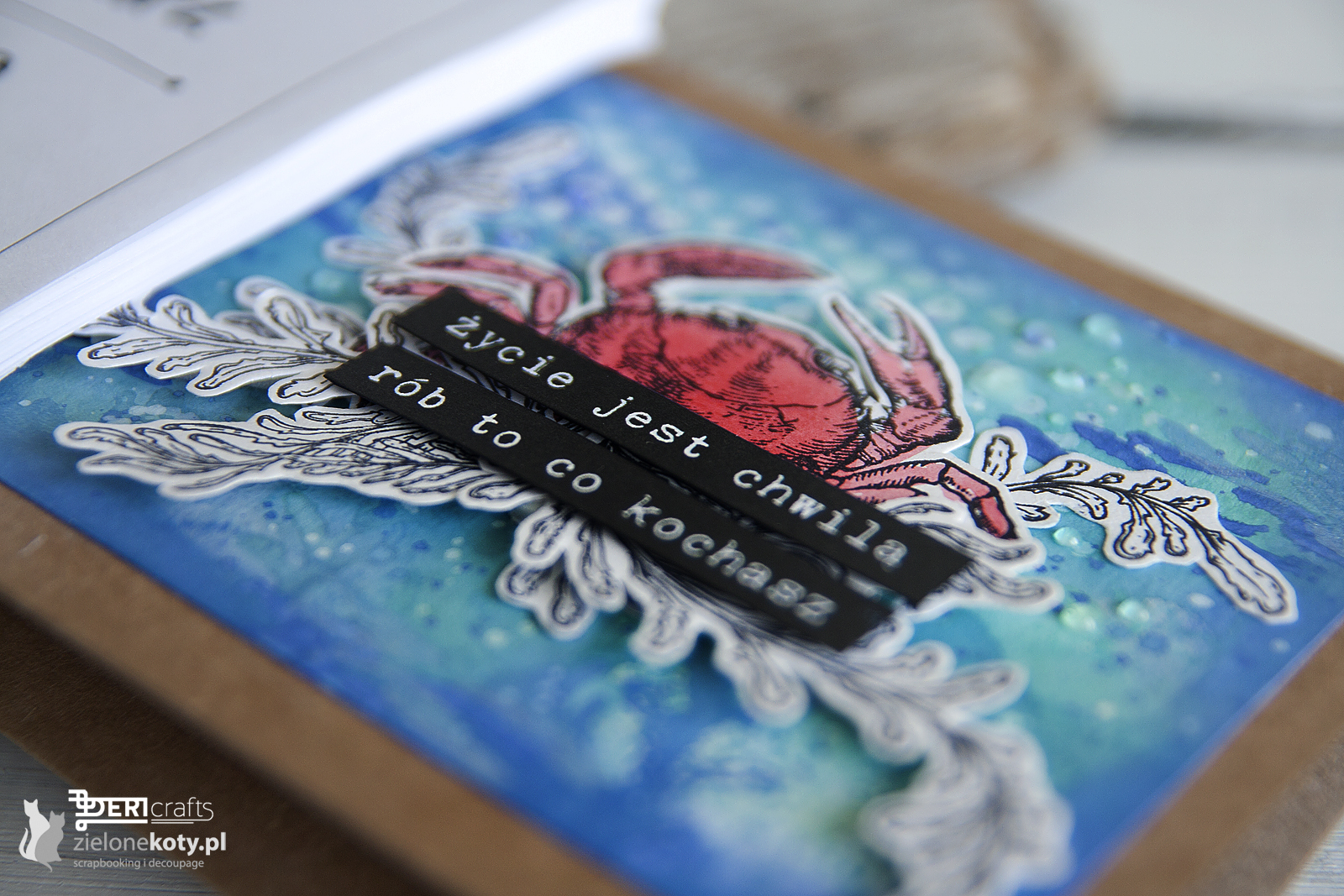 This time I have a calendar for you, not a card. You are probably surprised that I inspire in this topic so late, but I have to admit that I lost this base some time ago and when I was cleaning my craft corner, I discovered its presence with genuine amazement 😉 On the other hand, there is still half a year left and it would be a shame to waste this base. To create this work, I used a number of products signed by Tim Holtz, and the theme of the work was the seabed.