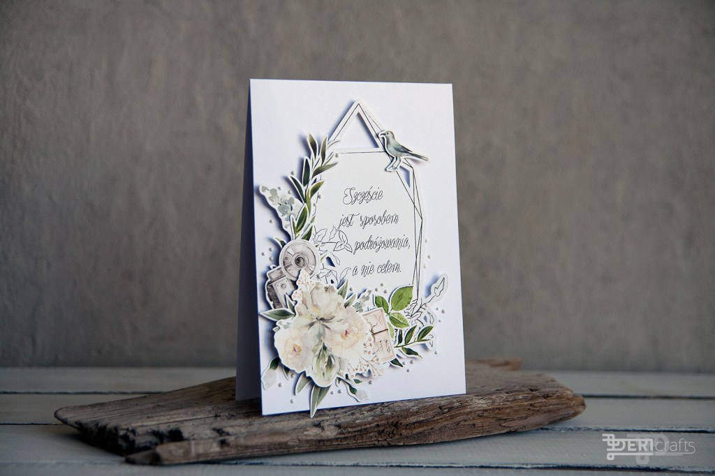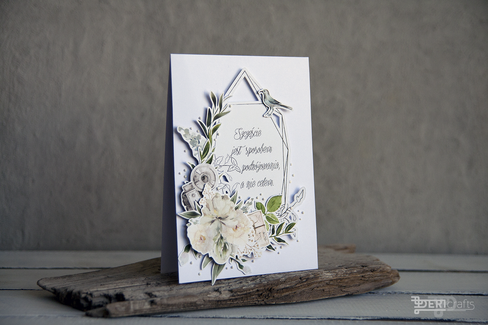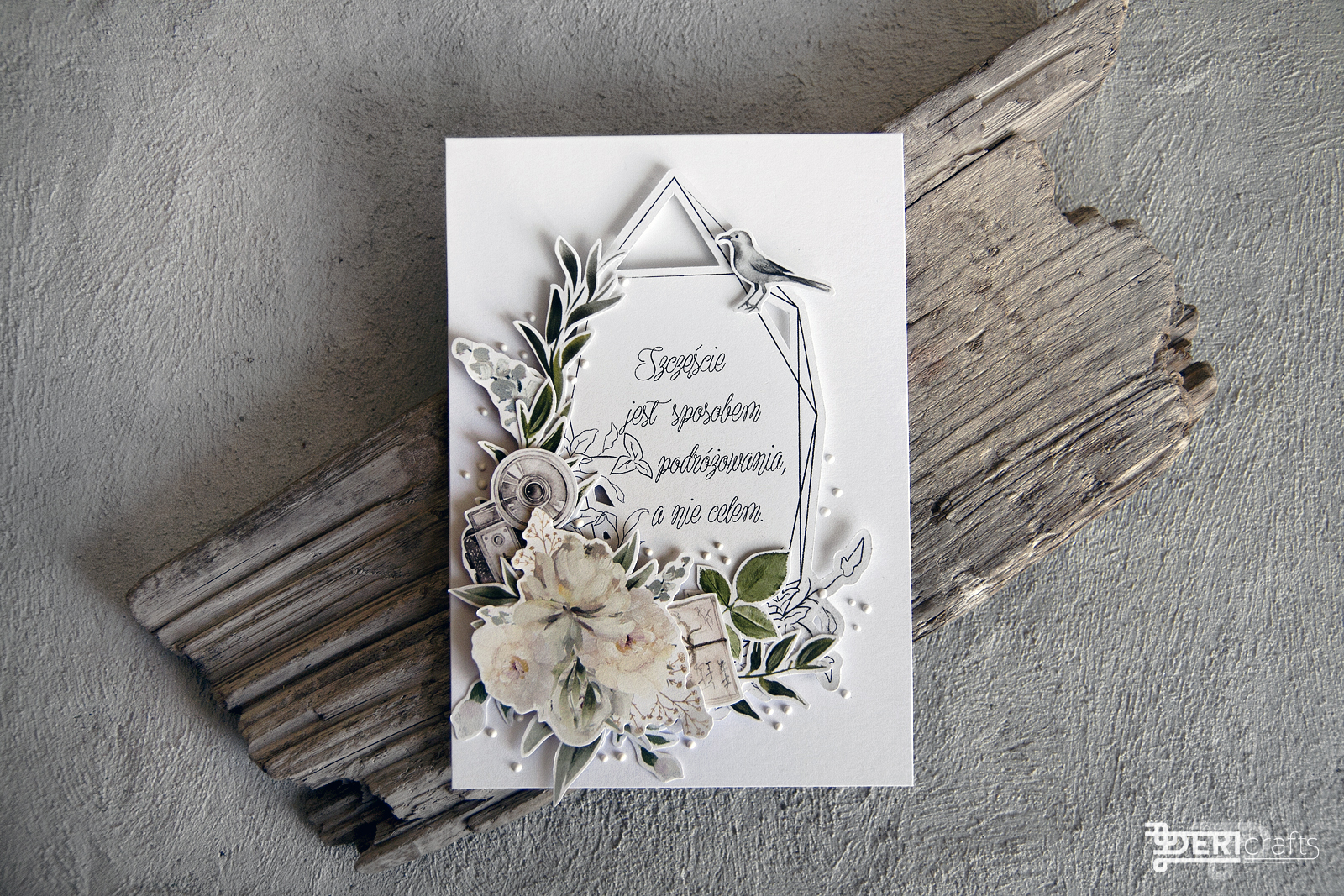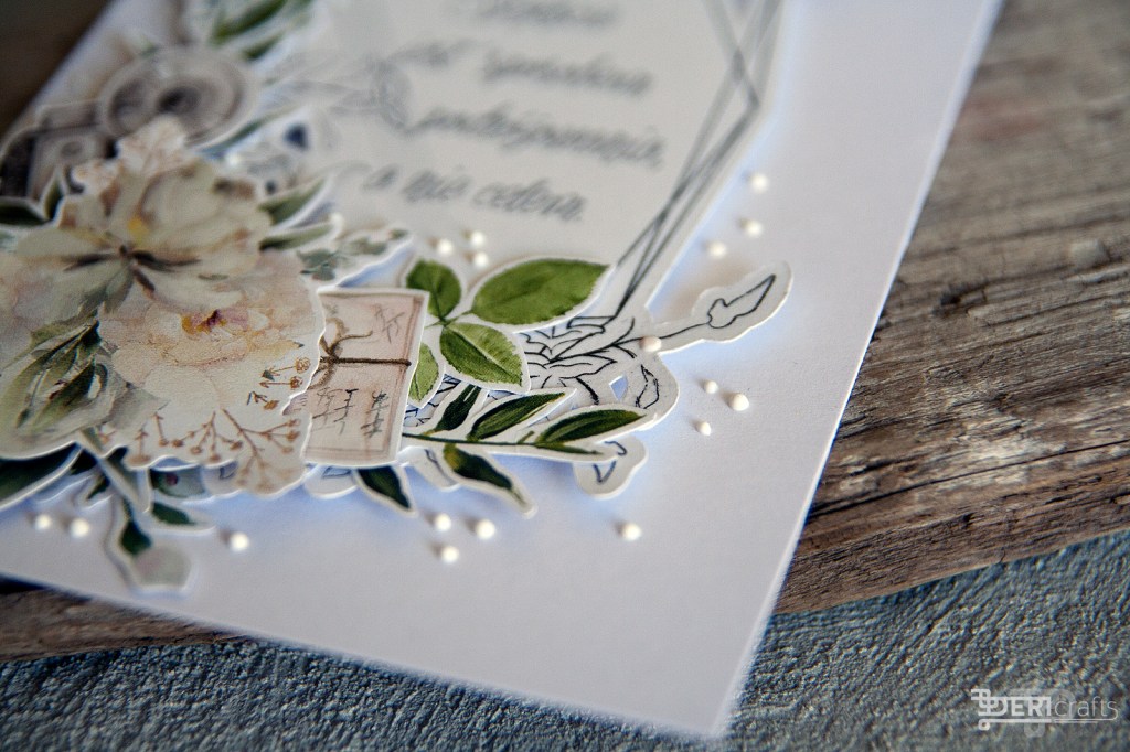 Today I wanted to show you one of the two cards that I prepared to order for the wedding. The card was to be in traditional colours and patterns. As geometric shapes are now fashionable, I used them in the presented work. Decorative elements are accessories made of papers from P13 Paper Products from the “Truly Yours” collection.
