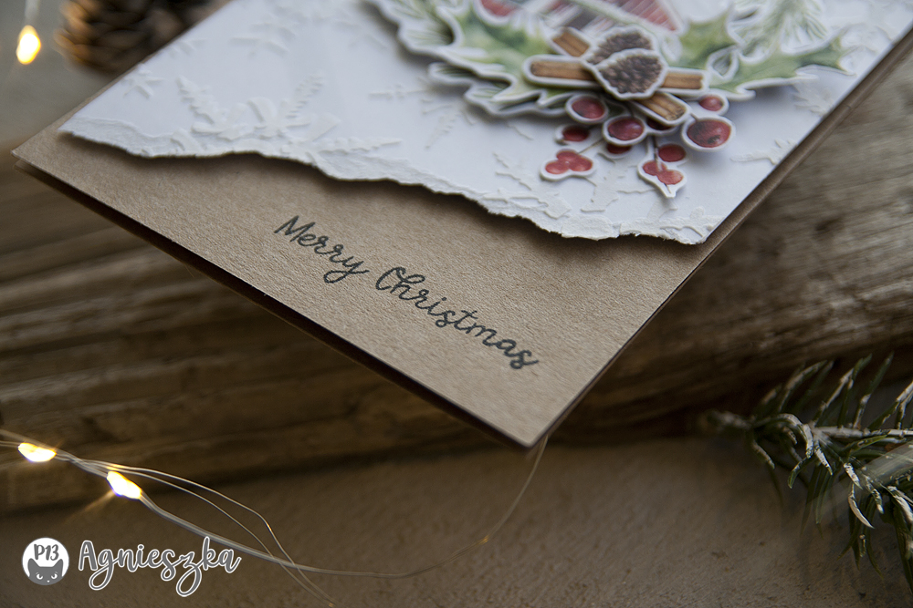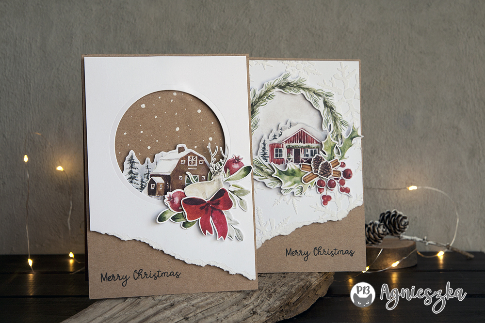 November is the perfect time to prepare Christmas cards. The autumn weather often keeps us home with rainy and windy aura, which in turn is great for creativity. However, not all of us have time, and maybe even inspiration, to create layered and rich compositions, so again I have a proposal for you for simple but effective Christmas cards. And since the graphics from the „Four Seasons- Winter” collection are not typically Christmas, they will also work well whenever you need to prepare cards with seasonal-winter wishes. At work, I used a paper with elements to cut out from which I prepared each of the compositions in both cards. Both works are completed, as always, with an appropriate inscription, this time made with a stamp from a set from the same collection. I hope that with my works I encourage you to make Christmas cards yourself.