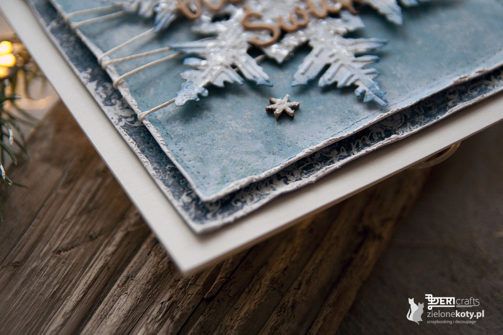 This year, for obvious reasons, a self-made card and sent, will be a great idea to show your loved ones from a distance, that we remember about them. My inspiration for you today is very wintry, but as it is with me, simple in a form. I used the latest UHK Gallery collection, my favourite snow paste, cardboard mini snowflakes and brilliant glass glitter. Of course, I couldn’t help but use the knurl, so fashionable this year! At work, I tried to use a die-cut element, but cardboard snowflakes are also great for the main decor. Besides, the paper collection has so many cool cutting elements that you can build beautiful winter cards without a die. Here I will tell you that if you use these ready-made pictures to fill the composition, gauze will be great. The list of products with which I made the card can be found below.