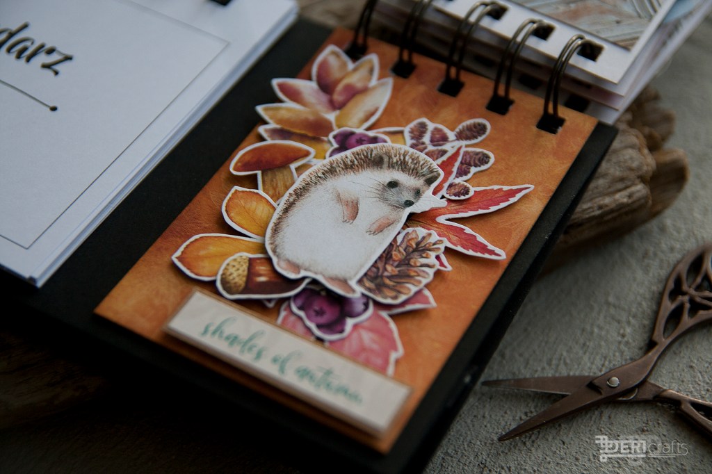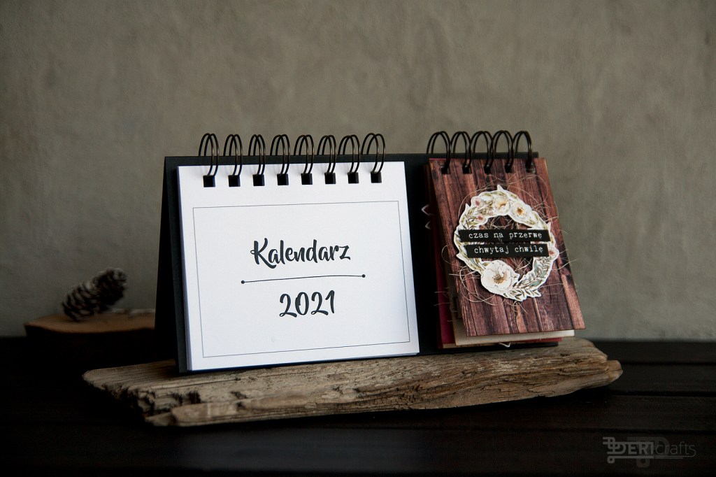 One of the standard gifts I have been giving to my family as a Christmas gift, for several years now, is the calendar. Initially, I have been preparing it from a to z, but it always took me too much time to find calendar cards to edit, then put it together, etc. A year ago I discovered a cool company – Fabryka Weny, where you can buy ready-made calendar databases, as well as notebooks, and cookbooks etc. A year ago, on a similar basis, I prepared a calendar with a permanent decorative element, but in this I decided to diversify it a bit and added pages for each season of the year. I have used 4 papers’ collections of P13 Paper Products company, from the “Four Seasons” series (Spring, Autumn, Winter) also as Beyond The Sea, and the wreath on the cover comes from the collection of the same company- “Forest Tea Party”. The cover’s inscription, on the other hand, is a very universal CraftO’Clock company inscriptions’ stripes.