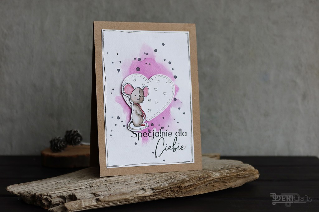Tak jak zapowiadałam wcześniej, mam dla Was drugą propozycję na prostą i szybką w wykonaniu walentynkę. Karta bazuję na tych samych produktach, które użyłam w części 1, dodałam tylko 2 nowe kolory pigmentów w proszku od Lindy’s Gang i zmieniłam formę kartki na bardziej tradycyjną.