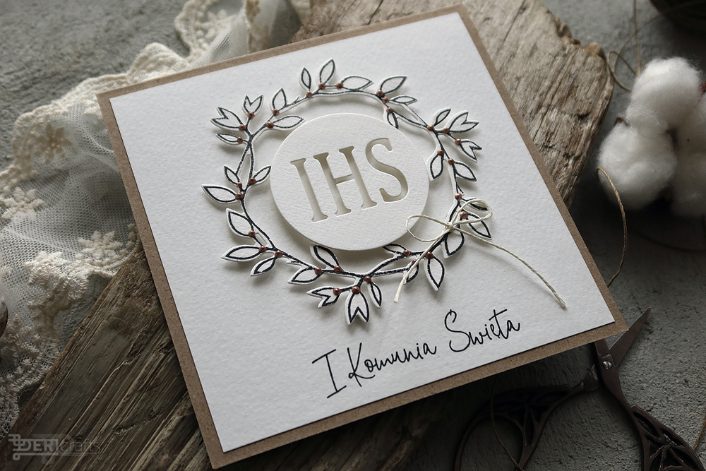 W tym roku przygotowałam dla Was 3 propozycje kartek komunijnych, jak zawsze w stylu clean and simple. Na początek prezentacja kartki z delikatnym wianuszkiem, całość biało czarna.