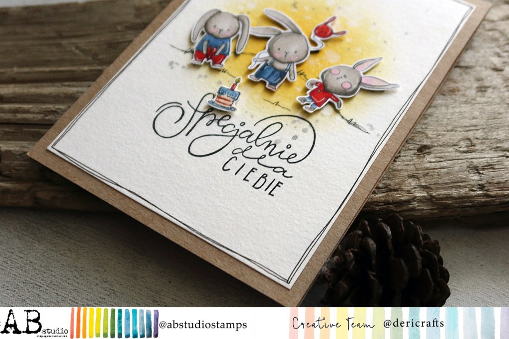 Na dzisiejszą inspirację przygotowałam prostą kartkę urodzinową z trzema uroczymi króliczkami! Pierwsza trzyma serce, by okazać miłość obdarowanej osobie (ID-1000), środkowa z zabawnym balonem z króliczkiem ma świętować urodziny (ID-1002), a trzecia jest tak gotowa na parkiet, by impreza na całą noc (ID-1013). No i urodziny nie mogą obejść się bez tortu (ID-1035)! W końcu całą kartę wieńczy stosowny do okazji napis (ID-425).
