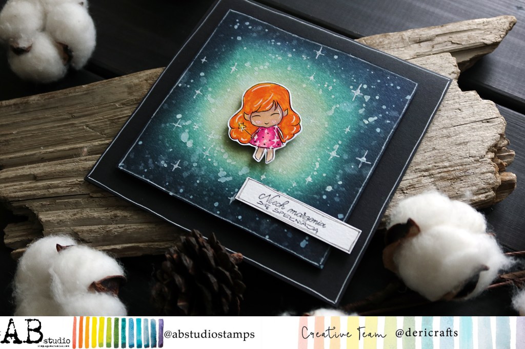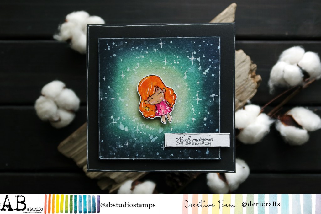 My new inspiration for AB Studio Stamps. Super cute redhead fairy (ID-1138 “fairy6”) making the dreams come true (ID-612 “niech marzenia się spełniają”)
