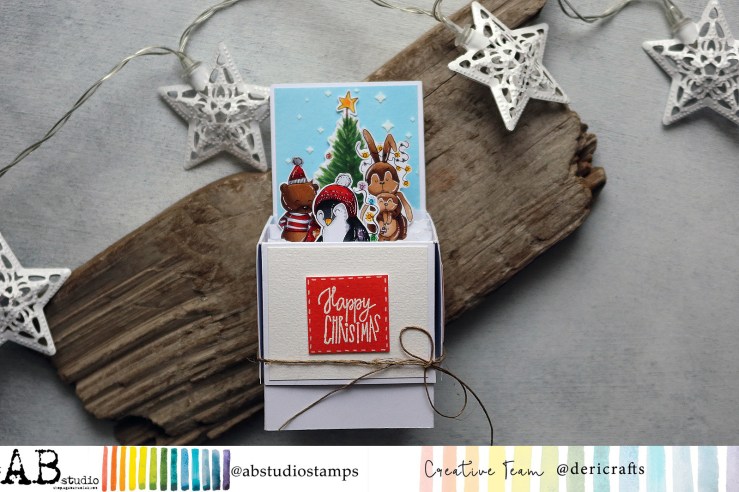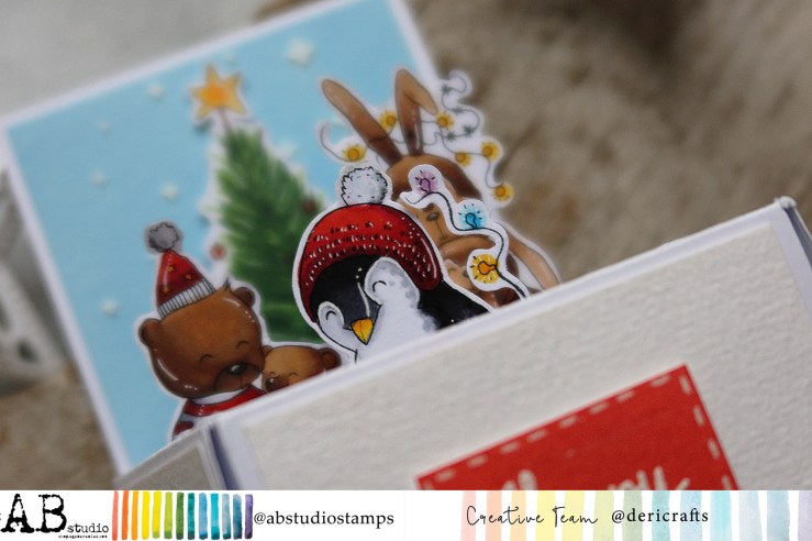 Here is my new inspiration done for @abstudiostamps, with cute creatures images from a new stamps release. To create the box I chosen this 4 stamps: cute bunny mama with a little bunny (ID-1264), Papa bear with a little daughter dressed in a lovely holiday dress (ID-1261) and finally an adorable penguin with Christmas lights, wearing a winter hat (ID-1258). To make a more festive theme I picked an older stamp- a Christmas tree (ID-796). As always in my works, a suitable sentence for the occasion has been added (ID-623). @ab.s.t.u.d.i.o stamps can be found both in producent store as also in @zielonekoty.pl.
