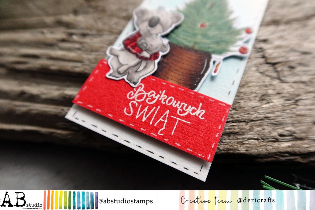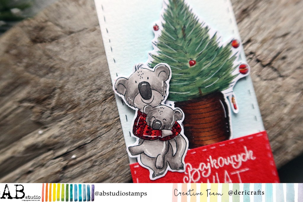 Today I have a new inspiration for @abstudiostamps in the winter theme. This time I used a super cute stamp with an image of a koala bear with a cub (ID-1263), which I put next to a Christmas tree (ID-796). As a final touch I added a suitable sentence (ID-606). All images I coloured with alcohol markers, while backgrounds with Distress inks. Short tutorial on how to make this tag you can find on my YouTube channel, link to it you can find below.