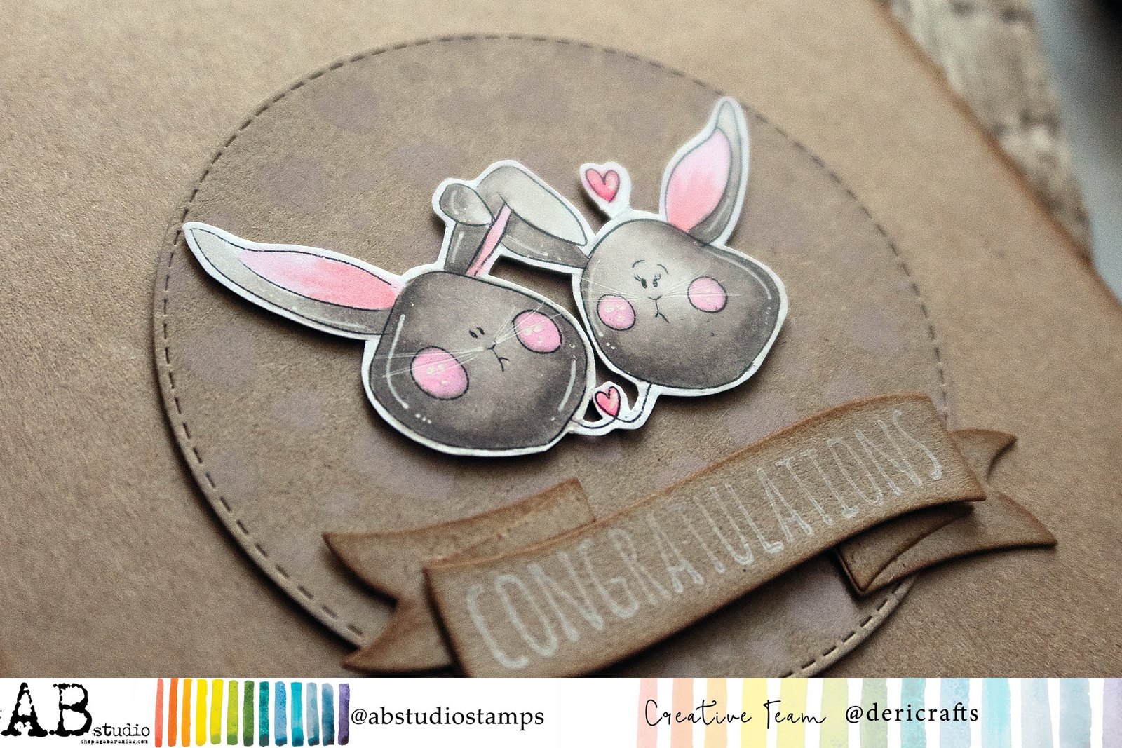 Wedding or Valentine’s Day, this stamp with adorable bunnies couple (ID-1300) will be absolutely perfect for this occasion. To give more ‘love vibes’ I have added a pink hearts made with Distress ink pressed through a mask (ID-329). The whole composition was finished with a inscription suitable to the occasion. Presented card is my new inspiration for @abstudiostamps with usage of @ab.s.t.u.d.i.o products.
