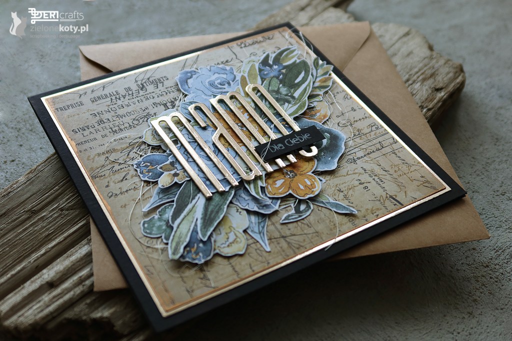 Co prawda mamy już czerwiec i Dzień Mamy już za nami, ale ja w tym roku wyjątkowo miałam wenę na tego typu kartki, stąd i moja dzisiejsza inspiracja dla was. Nie mniej jednak, tego typu prace (styl vintage) świetnie nadają się na kratki męskie, mimo nawet bukietu kwiatów jak centralnej kompozycji. Wystarczy zmienić napis Mamo na Tato i już macie kartkę gotową na Dzień Ojca!