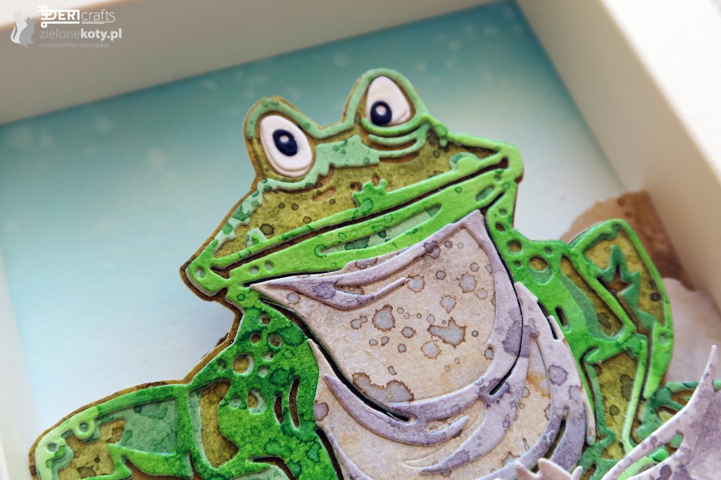Do you know the Brothers Grimm fairy tales? I read a lot as a child and one of my favorite stories was the one about three feathers. Why am I telling this to you? Because this fairy tale has become my inspiration to prepare a home decoration! And all this is the fault of the wonderful Tim Holtz, as always, who in the latest Halloween collection released two sets of dies that I absolutely had to have 😉 i.e. the charming frog-Myrion and fantastic feathers. The inspiration is a decoration for a child’s room, simple but cute with the possibility to expand. For example, adding lights can turn this shadow box into an unusual night light for your kids. If you are interested in this subject, please visit my YouTube channel, where you will find a tutorial on how to make such a decoration as also how to put together a multilayer dies.