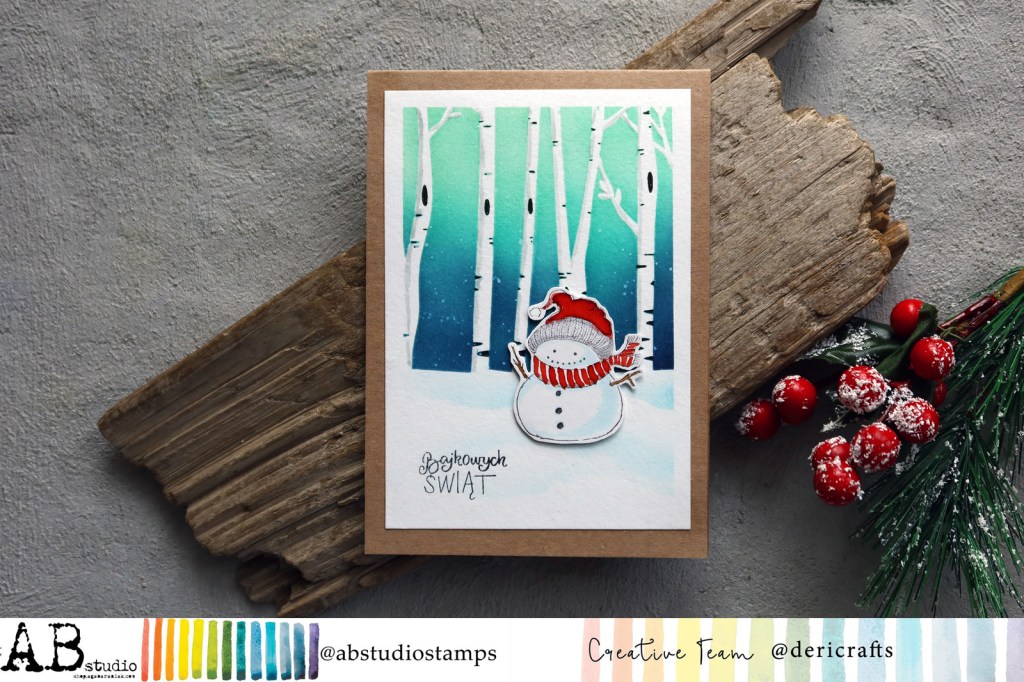 As I promised yesterday, I have for you the second, and thus the last this year, inspiration for @abstudiostamps made with products from @ab.s.t.u.d.i.o . It is also a winter card, with a cute snowman (ID-830) standing in a clearing in the forest. The forest, in turn, was created after applying the Distress inks through the stencil, with this motif (ID-315). The whole, as always, is finished with an appropriate inscription (ID-606).