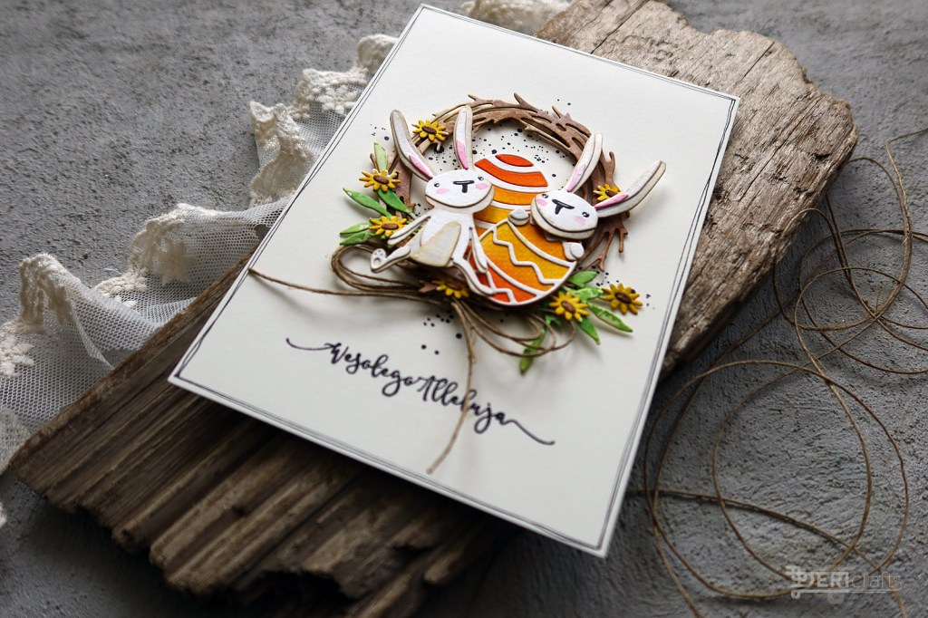 As promised, I’m posting the second version of the Easter card, this time more colorful. As before, if you are interested in how to make such a wreath, on my YouTube channel you will find a LIVE replay with a tutorial for such a wreath.