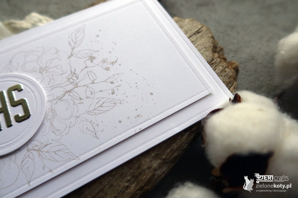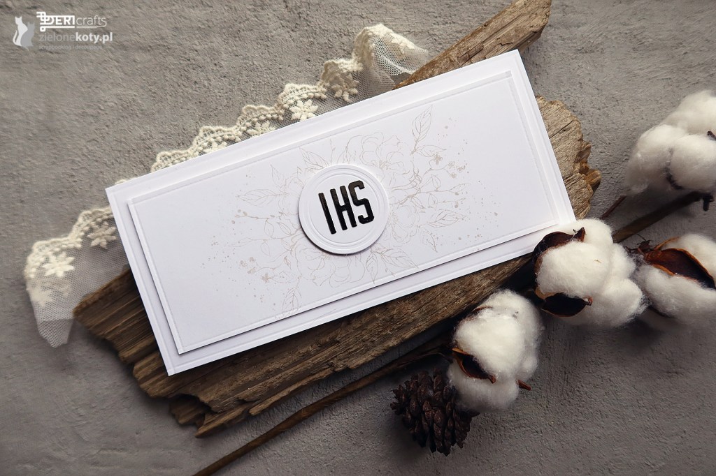 My today’s inspiration for you is, once again, a communion card. And that’s because our “Boss” Mirella said, that so far no one has been tempted to make this type of card from Tim Holtz products, especially no one in our dt team. I accepted the challenge and here is the first, super minimalist, elegant card made in 99% of Holtz products, in which you don’t need many products to prepare an original work.
