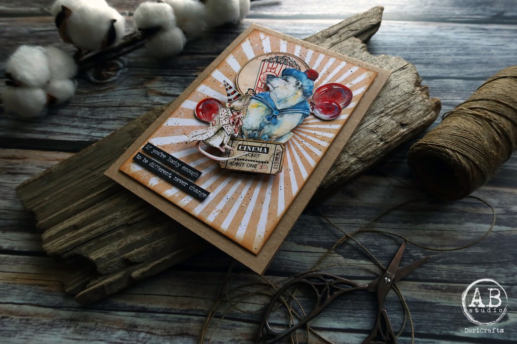 Have you seen the newest @ab.s.t.u.d.i.o paper collections release? This card was made with “One Night At Circus” paper collection and die-cuts from same collection (ID-100 and ID-103), as an inspiration for you and ABStudio. As you can see you don’t need a tone of products to make fun and original card 😊