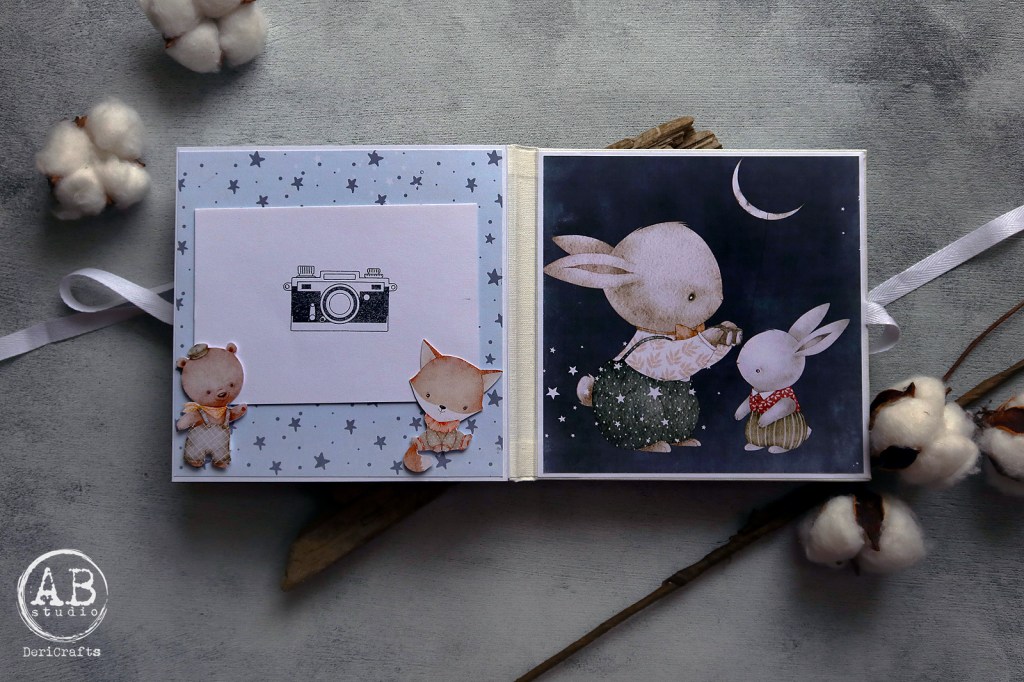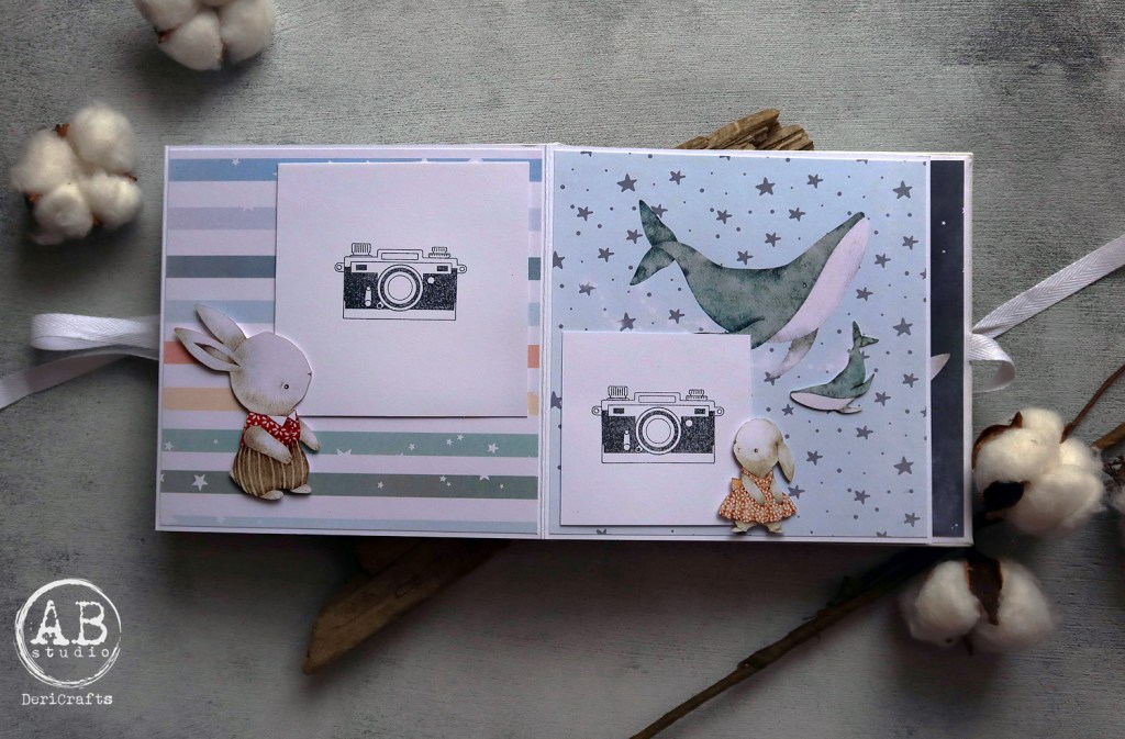 I really rarely make albums, but when I saw a cute creatures in new @ab.s.t.u.d.i.o papers set, I immediately knew, that this time I will show you something different that just a card. I challenged myself to make simple yet cute album basing only on craft papers. Although the album base is premaded, in fact, it is easy to make it from scratches. So, what you think? Album have a potential to develop it with descriptions under photos or even with some blink 😉
