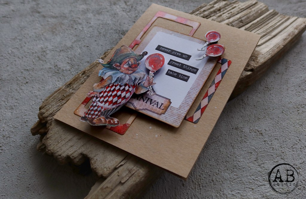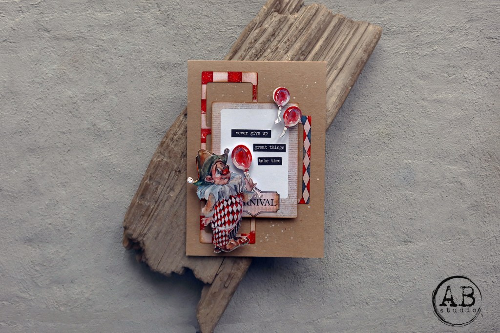 Here is another card for @ab.s.t.u.d.i.o , again, made of ‘Circus’ paper collection. This time however, I have used only die-cuts as a main decoration (ID-101, ID-100).