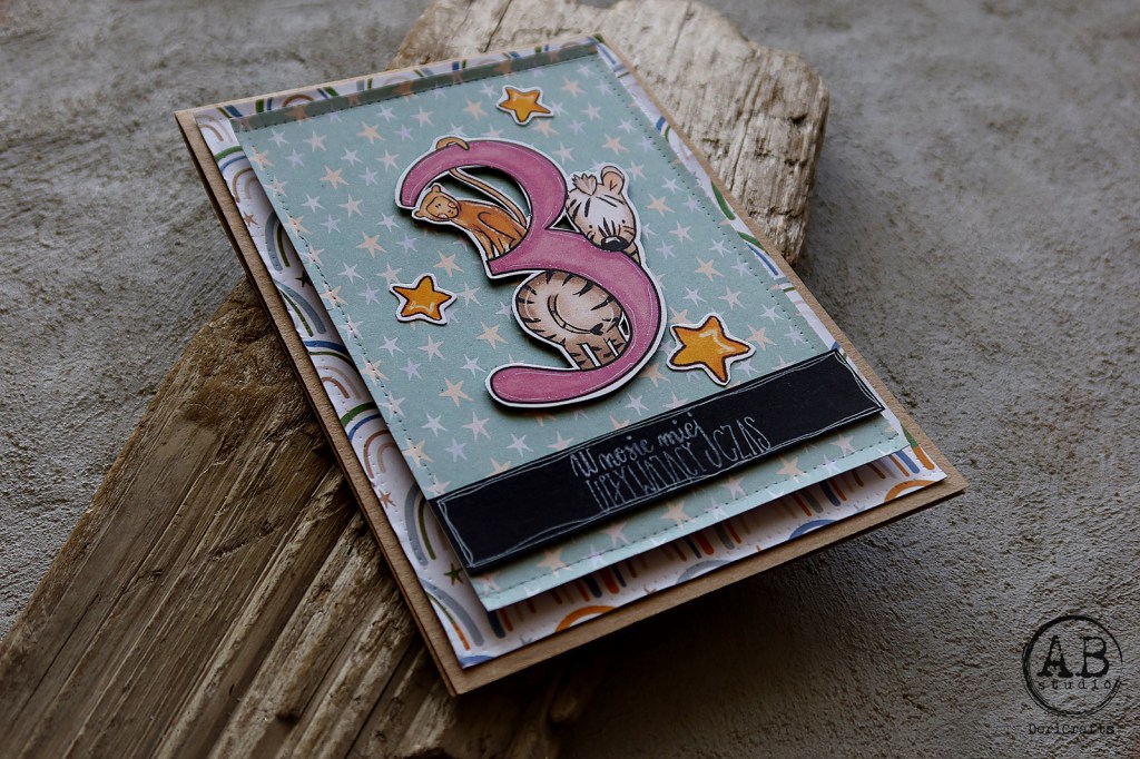 Jest to seria 3 kartek zrobionych w oparciu o starszą kolekcję papierów “Simple story: Birthday”. Pierwsza praca jest lekka i nie wymagająca specjalnych narzędzi do jej przygotowania. Wykorzystałam tylko papiery z kolekcji oraz odbitkę stempla ze śmiesznym napisem. Kolejne prace pojawią się w kolejnych postach.