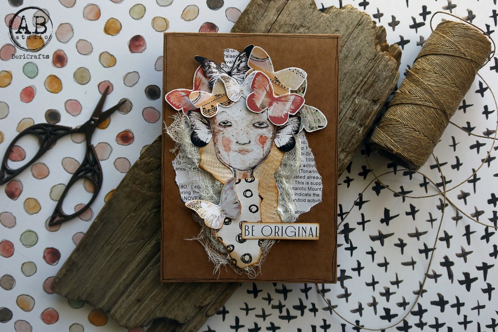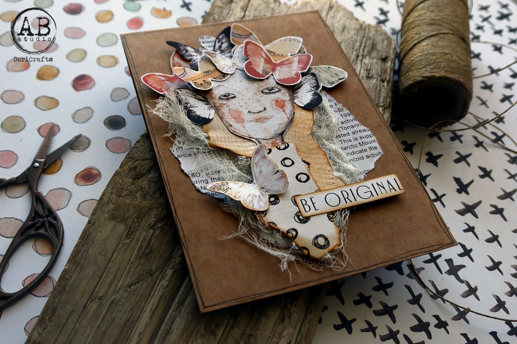 Mrs. Autumn, a card made for @ab.s.t.u.d.i.o from older papers collection “Cream”. This work shows, that you do not need tones of tools to make fun, cute cards. It is enough to have scissors, glue and 1 papers collection.